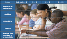 algèbre, géométrie, nombres, opérations, problèmes, etc. |
